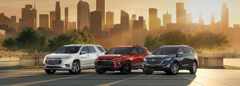 From the agile and fuel-efficient Chevy Trax and Equinox to family-focused three-row models like the Tahoe, our Chevy dealership has a new SUV for every daily commuter or family.