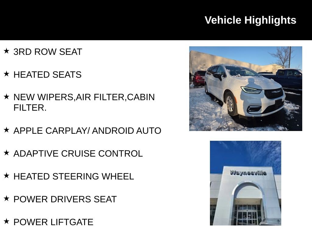 The Pacifica's spacious interior, with seating for up to eight, ensures ample room for your growing family and all their belongings. The versatile 60/40 split-folding third-row seat and power liftgate make loading and unloading a breeze, while the heated front seats and steering wheel provide a cozy and comfortable ride, even on the coldest days.