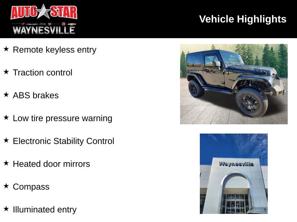 * 2017 KBB.com 10 Best SUVs Under $25,000 * 2017 KBB.com 10 Most Fun SUVs * 2017 KBB.com 10 Coolest Cars Under $25,000 * 2017 KBB.com 10 Most Awarded Cars * 2017 KBB.com Best Resale Value Awards * 2017 KBB.com 10 Most Awarded Brands Check out all these great options ABS brakes, Alloy wheels, Compass, Electronic Stability Control, Heated door mirrors, Illuminated entry, Low tire pressure warning, Remote keyless entry, Traction control, 18" x 7.5" Polished Satin Carbon Wheels, 3.21 Rear Axle Ratio, 4-Wheel Disc Brakes, 8 Speakers, Air Conditioning, AM/FM radio: SiriusXM, Audio Jack Input for Mobile Devices, Auto-dimming Rear-View mirror, Brake assist, CD player, Cloth Seats w/Adjustable Head Restraints, Driver door bin, Driver vanity mirror, Dual front impact airbags, Front anti-roll bar, Front Bucket Seats, Front Center Armrest w/Storage, Front fog lights, Front reading lights, Fully automatic headlights, Heavy Duty Suspension w/Gas Shocks (DISC), Integrated roll-over protection, Leather steering wheel, Occupant sensing airbag, Outside temperature display, Panic alarm, Passenger door bin, Passenger vanity mirror, Power door mirrors, Power steering, Power windows, Radio data system, Radio: 130, Rear anti-roll bar, Security system, Speed control, Steering wheel mounted audio controls, Tachometer, Tilt steering wheel, Trip computer, and Variably intermittent wipers WE OFFER MARKET BASED PRICING, PLEASE CALL TO CHECK ON THE AVAILABILITY OF THIS VEHICLE. WE'LL BUY YOUR VEHICLE EVEN IF YOU DON'T BUY OURS.